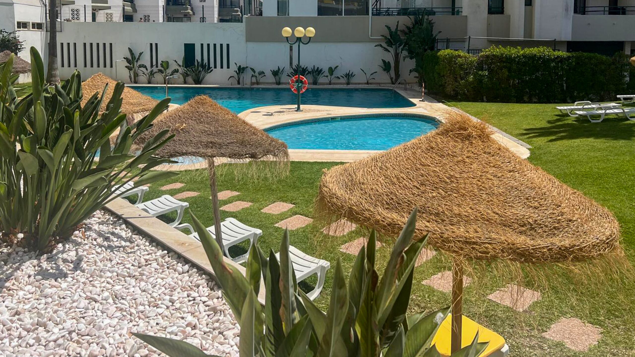 Inserido num condomínio com receção, sala de visitas, jardins e estacionamento privativo, este T1+1 localiza-se em zona calma, a poucos minutos da praia, com campos de golfe, restauração variada ao redor e a apenas 25km do Aeroporto de Faro.